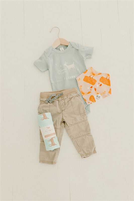 Cluck, cluck! We love the unique hand illustrated little chickens on this pattern! Not your generic baby design, this makes an adorable and unique addition to a gender neutral gift, and perfect to snag for your babe as well!