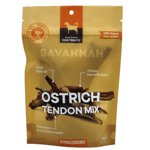 Chewy Ostrich Tendon Mix. Long-lasting, Natural Dog Chew Treat by Savannah Pet Food