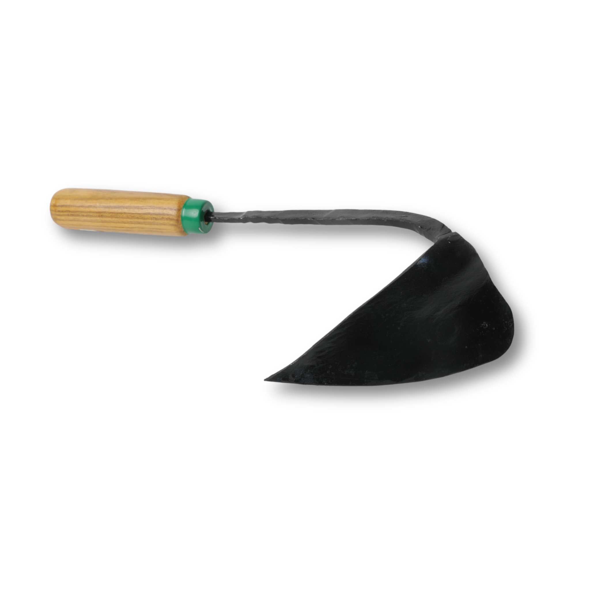 A compact, traditional-style tool designed for precision work in raised beds, containers, and tight garden rows. The sharp triangular blade slices through soil and roots with ease, while the short hardwood handle keeps control in your hands