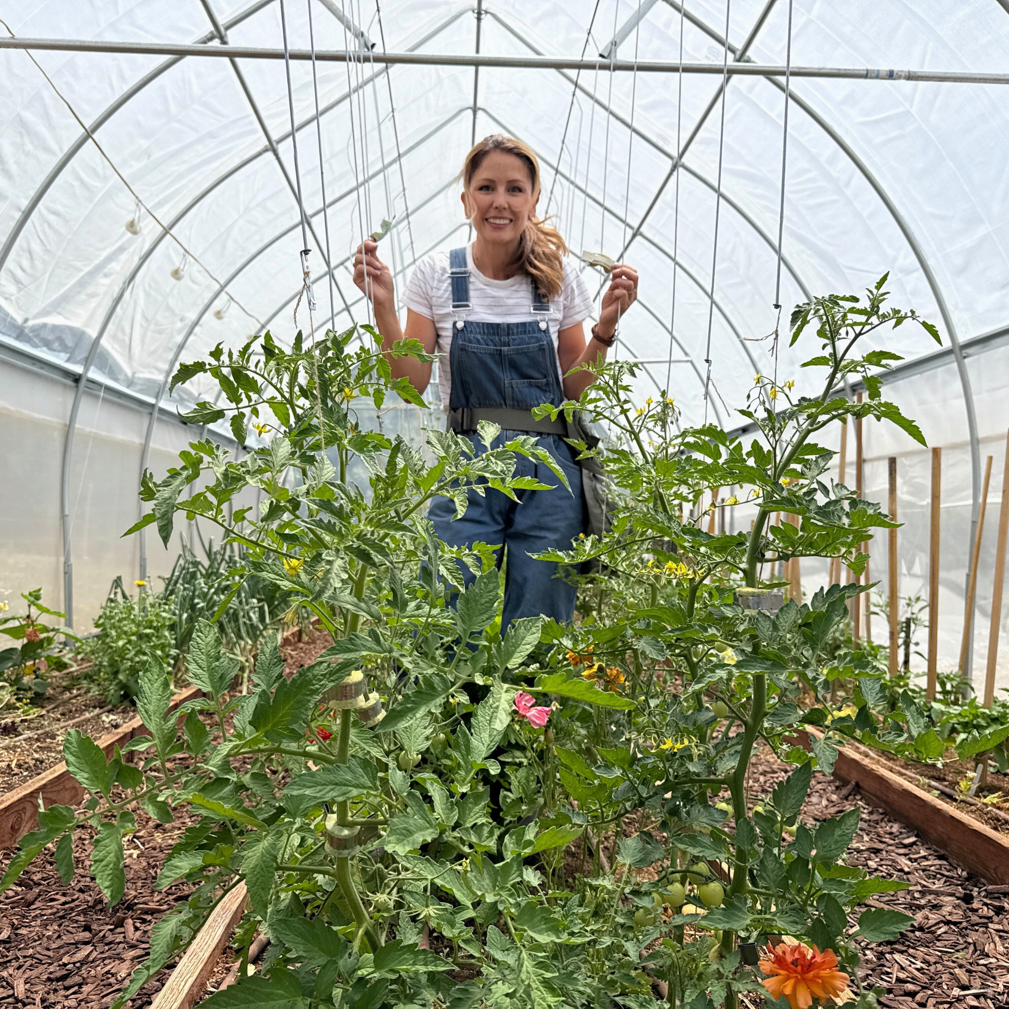 Learn more about Managing Overgrown Tomatoes, Pruning Indeterminate Tomatoes for Maximum Production in a Hoop House, Using the Lower and Lean Method for Indeterminate Tomatoes in a Hoop House, and Building Trellis for Indeterminate Tomatoes in our four-part tomato trellising series.