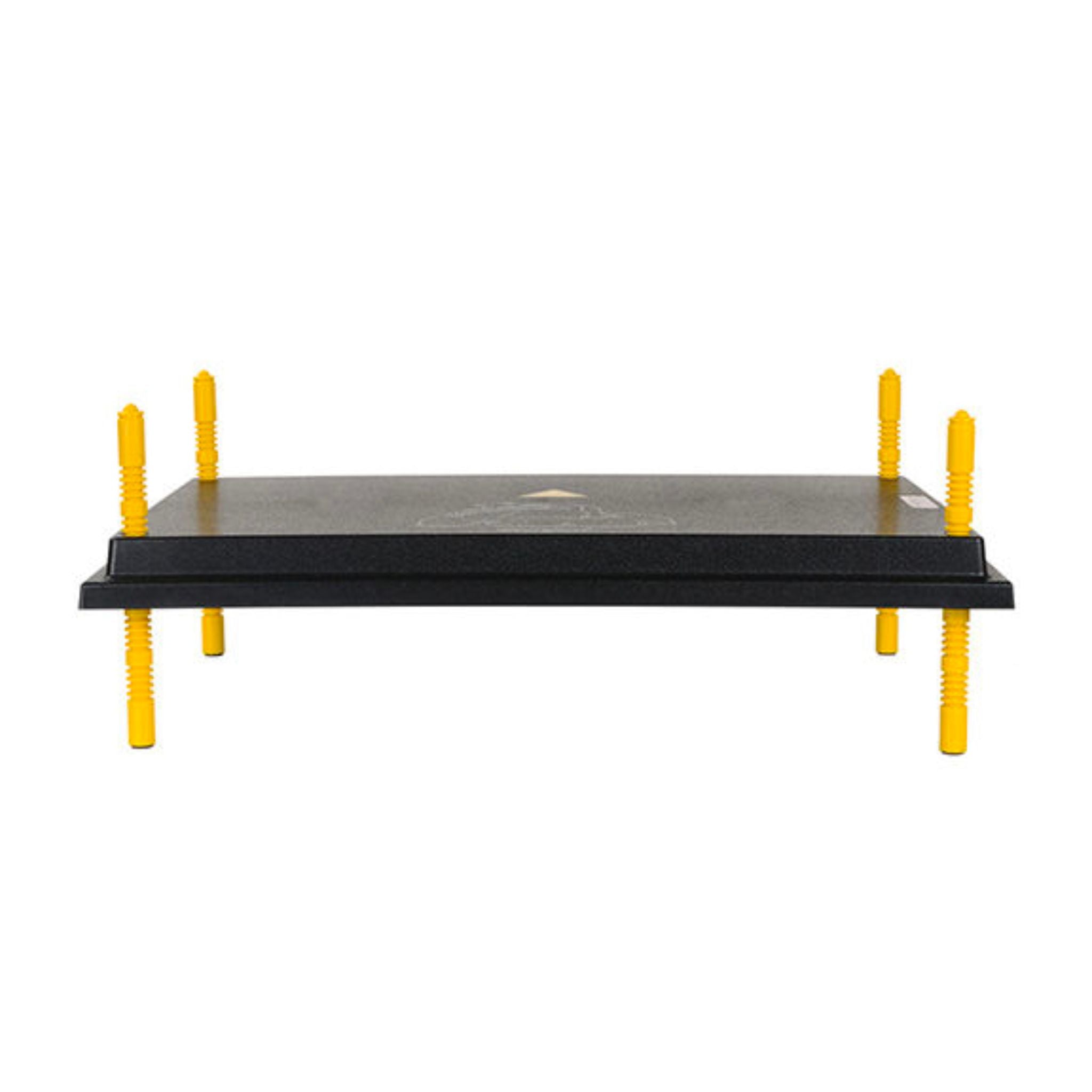 The heating plate is made primarily of robust ABS plastic, ensuring durability and longevity. The polyurethane insulation inside offers a high insulating factor, ensuring efficient heating. The adjustable legs, marked with "PUSH," make height adjustments simple and quick.