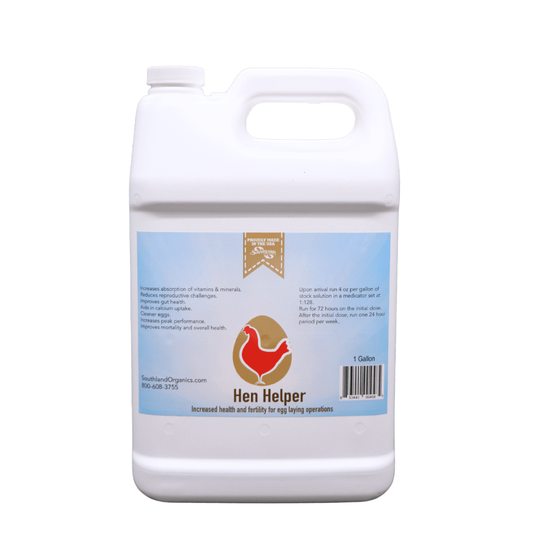 Hen Helper boosts overall health and nutrition in layer hens through a specially formulated combination of probiotics, organic acids and electrolytes. The special ingredients, humic and fulvic acids, have been scientifically proven to improve shell quality and egg production by keeping hens in peak longer.