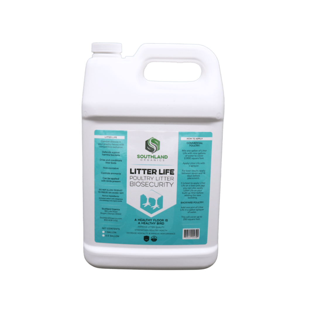 Litter Life is a poultry litter amendment designed to improve litter quality and strengthen poultry health. This mixture of biologically active carbon, organic acids and beneficial microbes helps dry and condition litter, defend against harmful bacteria and control ammonia. Birds grow in a healthier environment with less threat of disease, lower mortality and better performance.