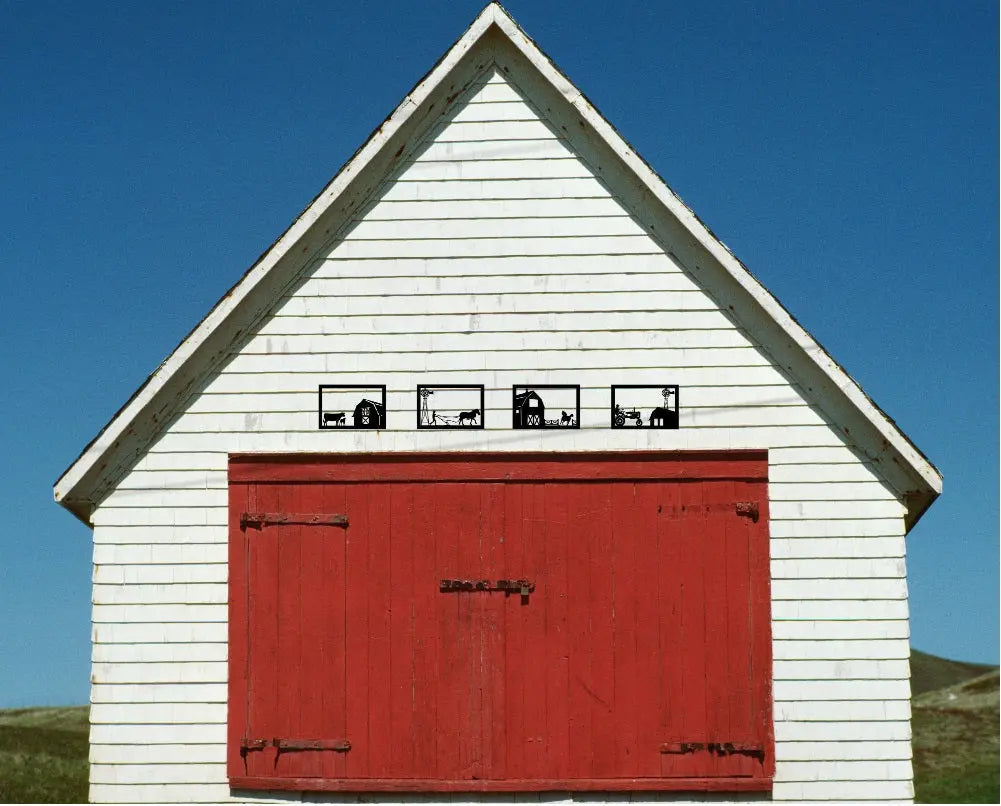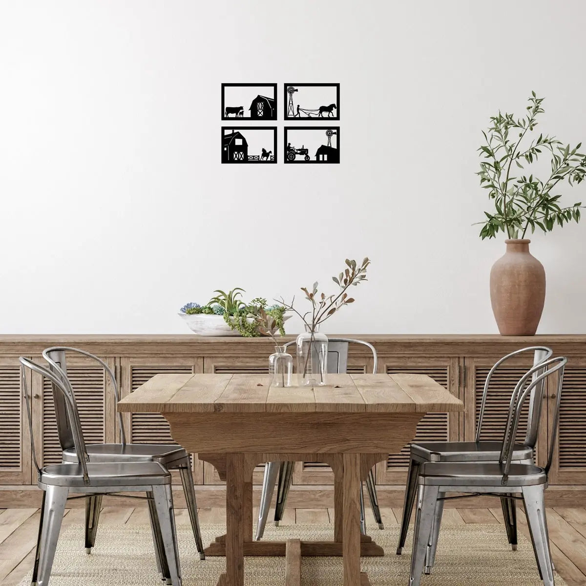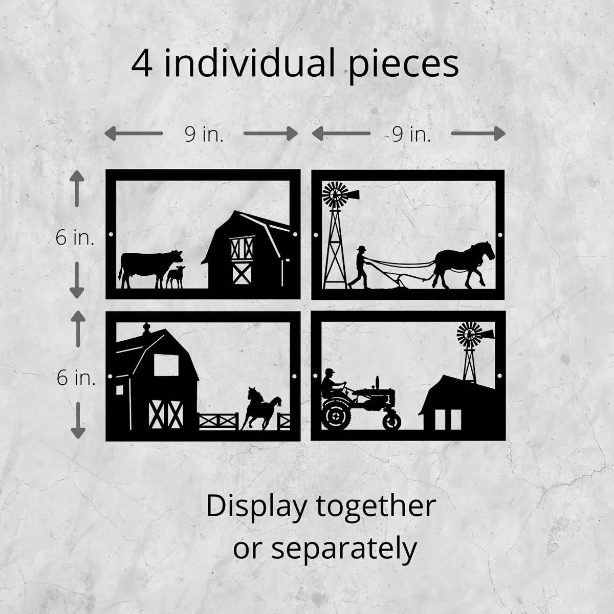 Show your love of farming and farm animals with our set of 4 Farm Metal Art Plaques - Cow, Horse, Plow, and Tractor with farmer