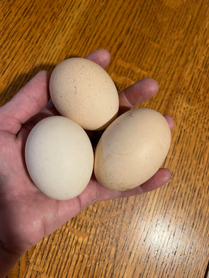 So, since that day we replaced our stock with Keith Loeffler's gracious gifts to our family. We ate well and bred hard. We culled everything we could find, measured hips and weight gain, tried to keep as many white earlobes as possible. Dark legs and white feathers were shocking me. The meat kept on coming and the eggs were big, tasty, and easy to hatch.